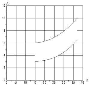 between 3c and 6c. Readings in between the two lines on the graph are acceptable