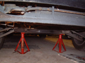 cross-member and a 3 tonne jack to lift the car and placed it on axle stands. It