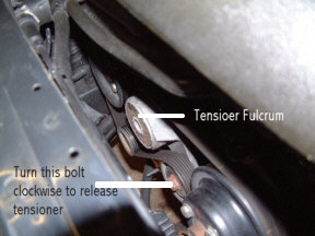 and released plenty of slack to pull the belt from the alternator pulley. I then