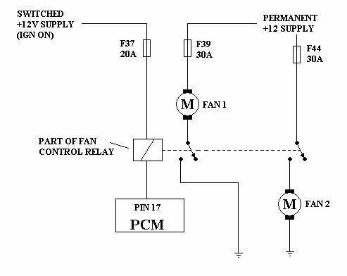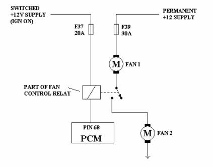 own fuse and the relay is switching fan 1 direct to earth and is switching 12v