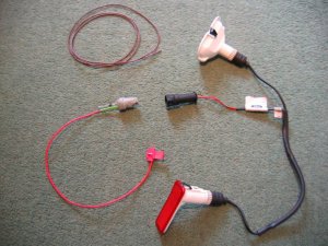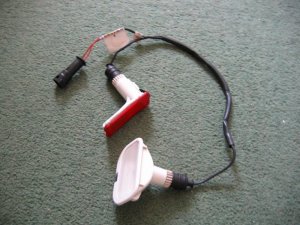 If there is no hole it is always possible to cut one. A template for a proper Ford hole is provided here, but if cheaper non-Ford lights are to be used a different hole may be needed, or even several if a few hi-brightness LEDs are considered! Note that the Ford light units are expensive, and you need four for a car. I understand that Granadas, even Escorts may have similar light units, and a trip to the scrappy, or an examination of Ebay may be called for! Template - TEMPLATE.BMP Download this bitmap and use Ms Paint to print the file. The printed template will then be the correct size. A picture of the Ford pair of lights for a door and their harness is below.