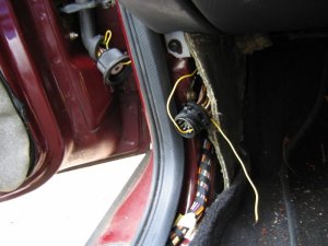 Levering plug out Once through the multi-connector, the earth wire connects to the door open switch which is about 6" away. There will be a wire already in place there \endash I fixed it to this and then connected the other end of the cable to my diode and plug in the door. Allow enough slack in the car body side to open the multi-connector in the future.