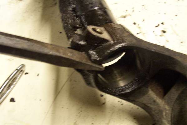 It's now a simple matter to lift off the retainer, the top mounting, the thrust