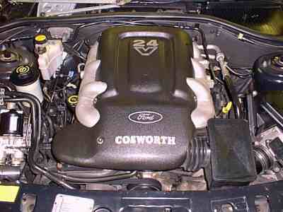 But instead of high pressure water, they advised you to use pressure steam? Catalytic Meltdown Recently a new owner collected his nice low-mileage Cosworth from his car dealer. During a long journey and a week away from home his engine became increasingly erratic, misfiring badly, and worsening every day until the car was almost undriveable and he saw a catalyst glowing red hot at the end of a journey. The owner eventually found that the dealer had pressure-washed the engine bay and water had filled the spark plug housings, shorting out the HT and caused the serious misfire. The effect of a high speed misfire is that unburnt petrol vapour covers the catalyst washcoat, which is then ignited by the next firing cylinder, and the temperature of the washcoat can be increased by 800°C, which is what happened to this catalyst and why he saw it glowing red hot. It will be a miracle if the catalyst - and the HO2S sensors, which are based on similar technology - have survived intact. Catalysts at £300 a time and HO2S sensors at £100 - that is bad news. In his case his dealer has apparently put his hands up and will meet the cost of the new parts - we hope. ...And there's more What else could happen? Oh, lots more yet. The springs inside the drive belt tensioners and the bowden cable and lever for the bonnet release will now start to rust. The commutator brushes and field coils inside the alternator have just received a right good soaking so they'll be ready to pop the diode pack and/or corrode the front or rear bearings. Any of the connectors for the INJectors, the CKP tucked right down by the crankshaft pulley, the ECT, IAT and TP sensors at the top of the engine and the electronic ignition system EDIS at the front - and the major square connectors on the drivers side of the engine bay wall, C110 and C112, may have had the waterproof grease driven out by the high pressure detergent. These are now free to collect moisture and to corrode very slowly. The spark plugs, especially on the Cosworth, are sitting in water 2 inches deep and shorting the HT nicely to earth. Odd errors may start to appear especially after heavy rainfall, some sensors producing LOS so that the car only manages 10 miles per hour. As if this weren't fun enough, the autobox may start to show symptoms, too, like dropping heavily into gear or refusing to select 4th. All of these corrosion-induced faults can only get worse as the gremlins multiply ... Okay - So How do I clean the Engine? Lock the hose away and don't even think of using a pressure or a steam washer. The proprietary cleaners are expensive, too, and many need rinsing down with a hose, so leave them on the shelf. All you need is a little patience, a gallon of paraffin and a cut down 1" paintbrush and perhaps a radiator brush for awkward areas. Remove the under-engine cover, spread paper beneath the engine, and take off easy to remove items, like the air inlet hose. Work the paraffin into the grime starting from the top of the engine to the bottom, jack up the car onto axle stands and then work underneath. Wipe off the paraffin with old rags and dispose of these safely. Paraffin is an excellent degreaser, but it is virtually inert, does not produce heavy fumes and dries nicely. Using the brush you can control where it goes and it will not effect the multiplugs because it is not under pressure. Below are pix of the above and below for my Cosworth. In the six years I have owned it it has never seen a pressure hose, steam or spray engine cleaner. I have the same paraffin I bought ten years ago and its a deep black colour by now, but I pour it back into the container and it's ready for degreasing any time I need it . I collect the paraffin I have used where I can by letting it drip back into a container. I leave this for a day or so to let the particles settle out, then I decant the paraffin back into the original container. NOTE: If you check the connectors and find them dry without the waterproof grease - do not use lithium based grease! Use Nyogel 760A, or order it from Ford - Finis 5 030 186.