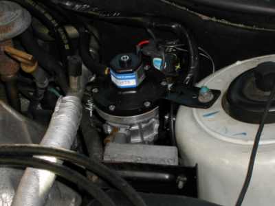 The control ECU. The unit is fitted beside the drivers’ headlight, just below the cruise control module. Initial adjustments are made to the system at idle speed. Then the car is taken for a set-up run. All running parameters are collected on a laptop and then downloaded onto the control ECU. This allows for easy fine-tuning if required.