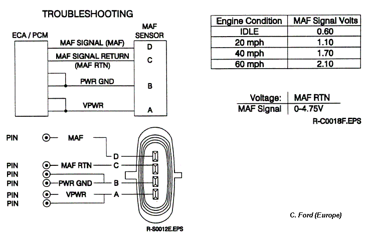 Mass Air FlowSensor Data The MAF used on the Ford Scorpio is the standard hot-wire apparatus. The range of the instrument depends on the engine.