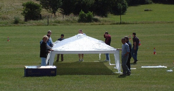 4th July 2004 Together with Phil the Granada webmaster, It was my pleasure and privilege to organise the second Home Counties All Clubs Meet together with the Granada clubs on the large field at Tripes Farm, Chelsfield, Orpington on Sunday 4th July. At 0815 the morning was clear and bright. Clouds moved over and threatened but it was clear and even sunny during the morning. The first arrivals helped set up the gazebos - thanks guys.