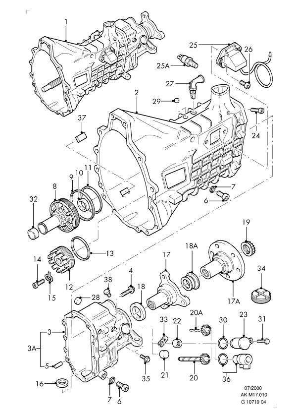 | Front transmission housing to rear transmission housing |