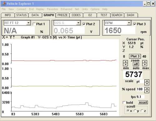 Brett bought his own OBD lead, ran the Vehicle Explorer on the HO2S sensors and