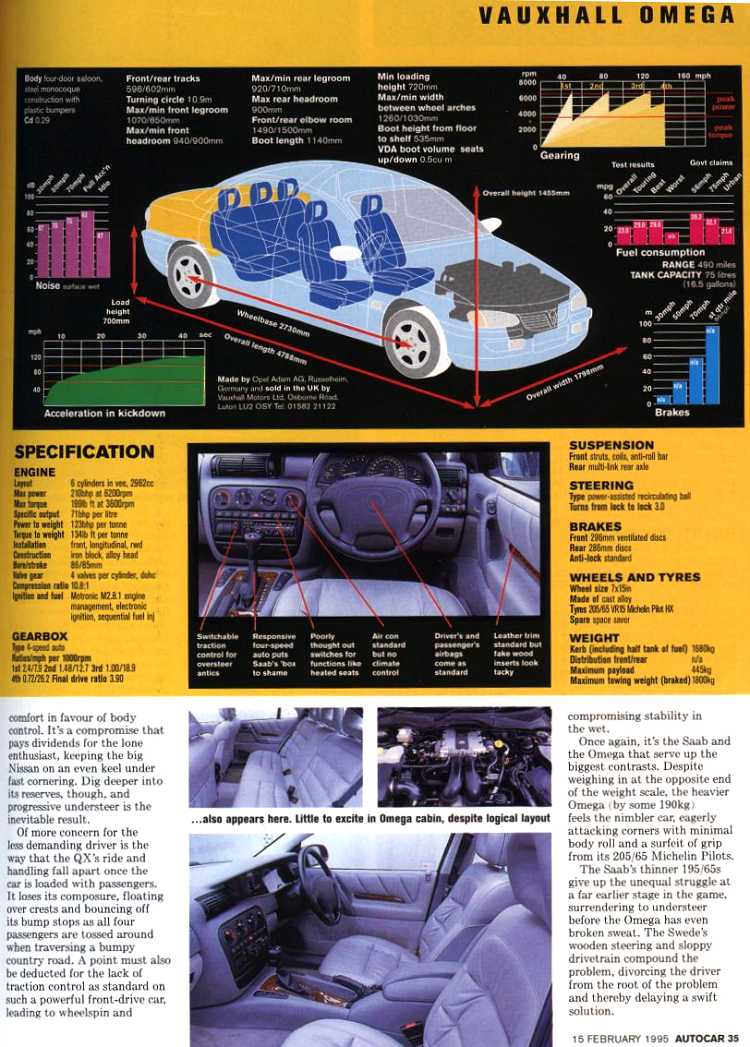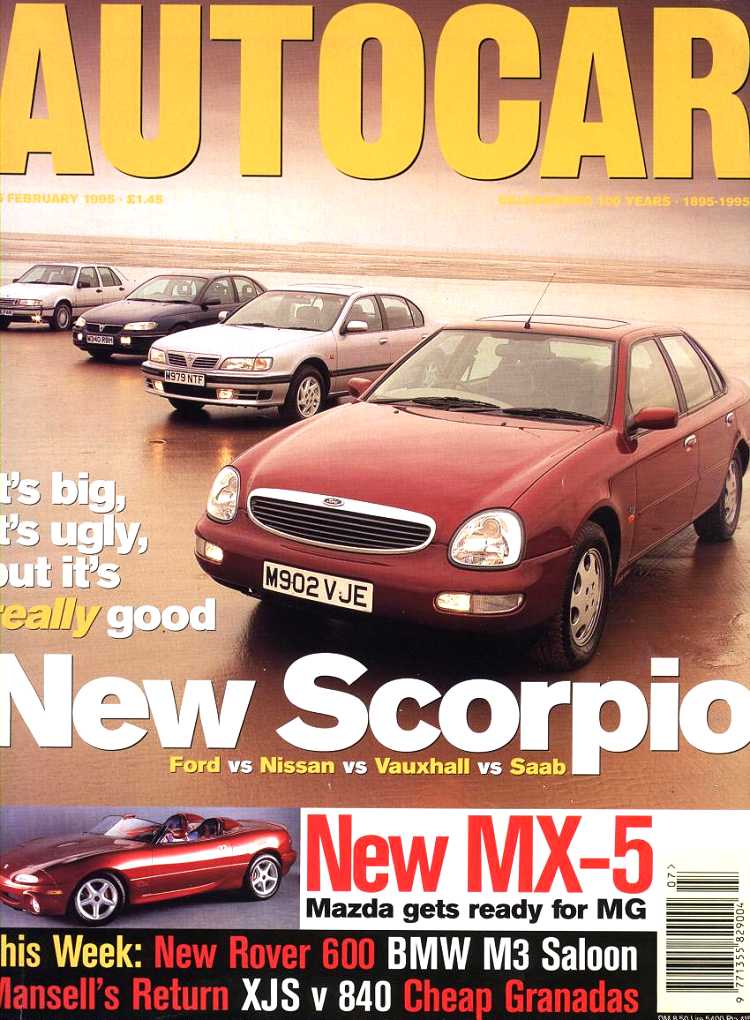 Feb 1995 Autocar New Scorpio V Saab 9000 V Vauxhall Omega V Nissan QX