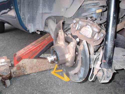 I was suffering from a squeak from the rear nearside of the car which was consistent with wheel rotation. Examination of the brake pads revealed that they were getting quite thin (80000mile) and I had the offer of having them done at cost +£10 so I opted for the easier way and had them done professionally. The rear nearside wheel bearing was not causing concern at this time. After having the pads replaced the squeak returned with a vengeance a couple of days later and I could see that the disc was rubbing very slightly on its outer edge. I thought that this was due to the fact that the discs were 0.5mm below nominal thickness of 9mm so I carried on and the squeak came and went. I eventually heard some rather distressing noises from the rear end so I thought it was time to throw caution to the wind and investigate...getting on in years and the thought of crawling under cars rather put me off but so did Mr Fords cost for his men to do the work (see later). I thought those days were over. On first jacking up the car I found that the wheel was behaving as though it had a Universal Joint for a bearing . It was not firm and tight like it should have been although the noises I had heard were not consistent with 'bearing failure' as I had experienced when examining vehicles in my previous life... or so I thought. I have since realised that one should NOT 'think', just investigate.