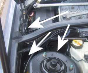 and around the windscreen wiper mechanism and around the fuse boxes. These areas